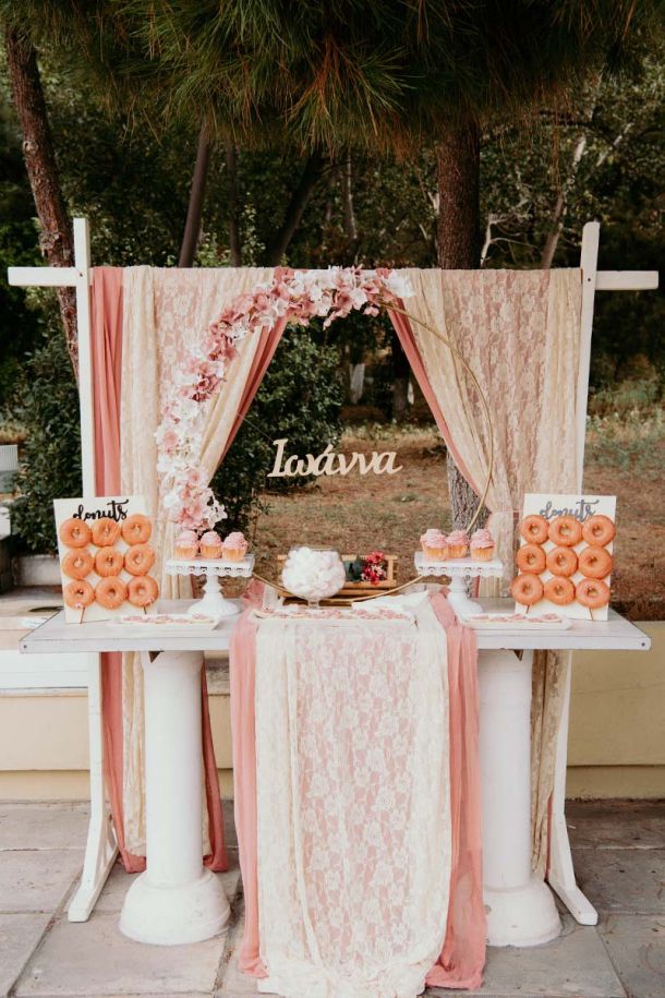 Little Ioanna’s baptism in Thessaloniki was a heartfelt celebration filled with charm and elegance. Delicate pink and cream tones, a beautifully adorned dessert table featuring donuts and cupcakes, and soft lace accents created a serene and enchanting atmosphere for this special day.