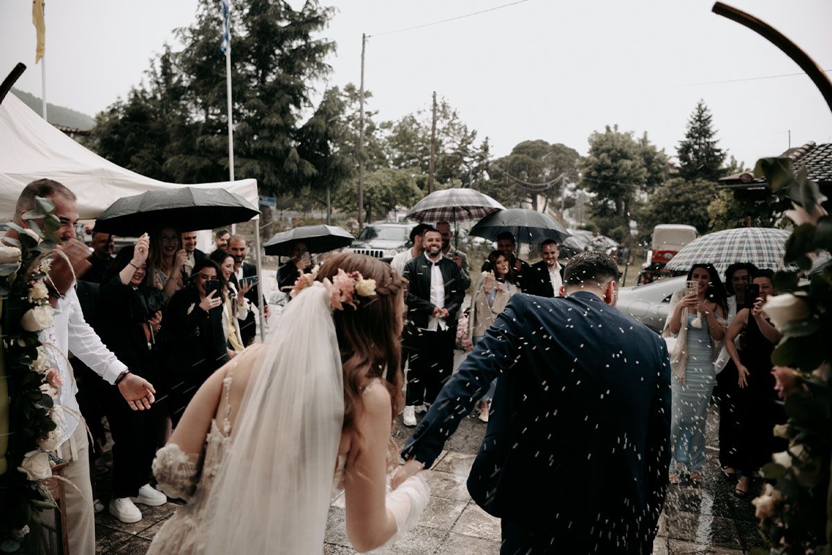 Anastasia and Dimitris’ wedding in Chalkidiki proved that a little rain can’t stop a great party. Stormy skies gave way to even stronger vibes — laughter echoing under umbrellas, spontaneous dance moves, and a celebration that felt electric from start to finish. It was the kind of night where the weather didn’t matter, because the people made it. Unforgettable.
