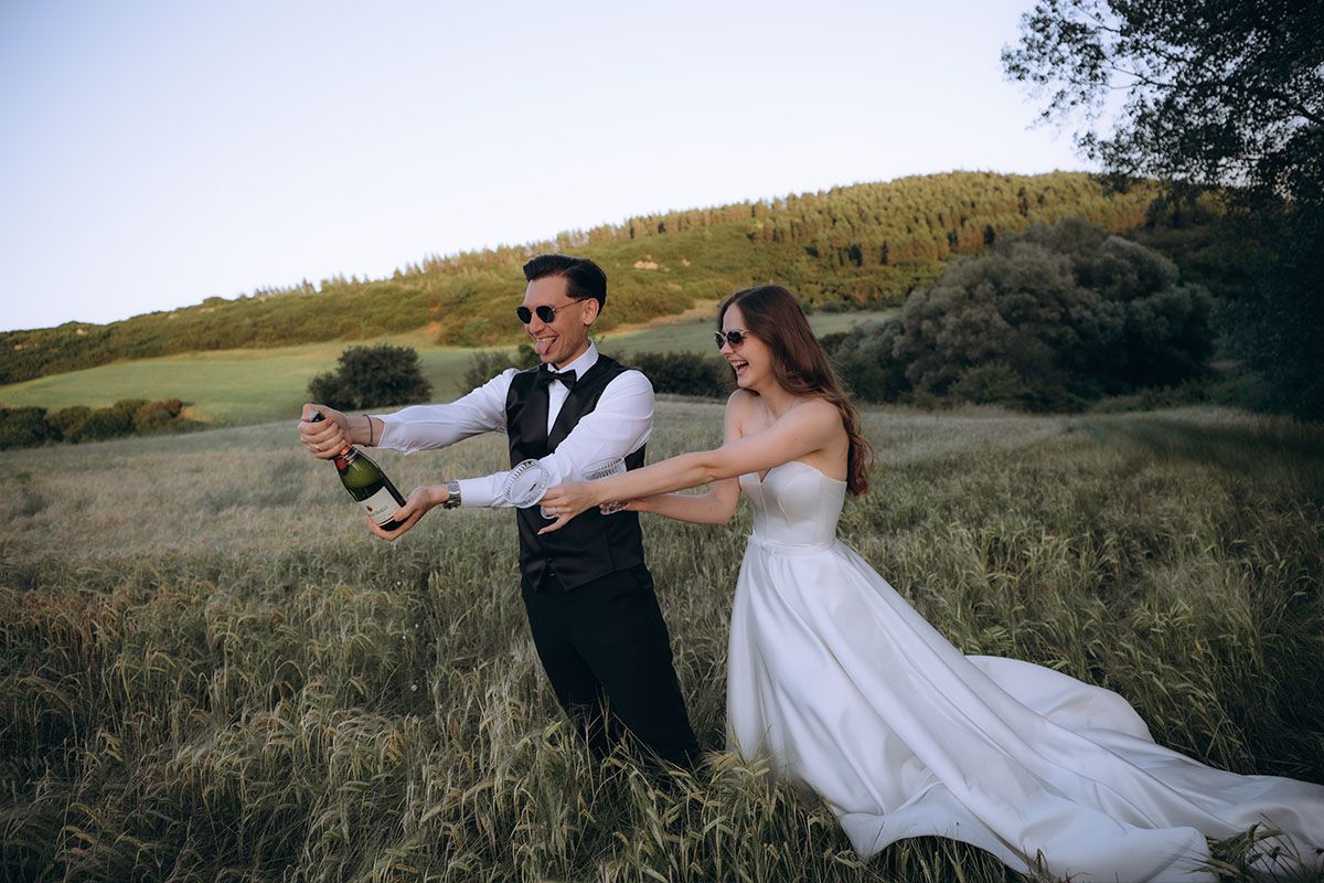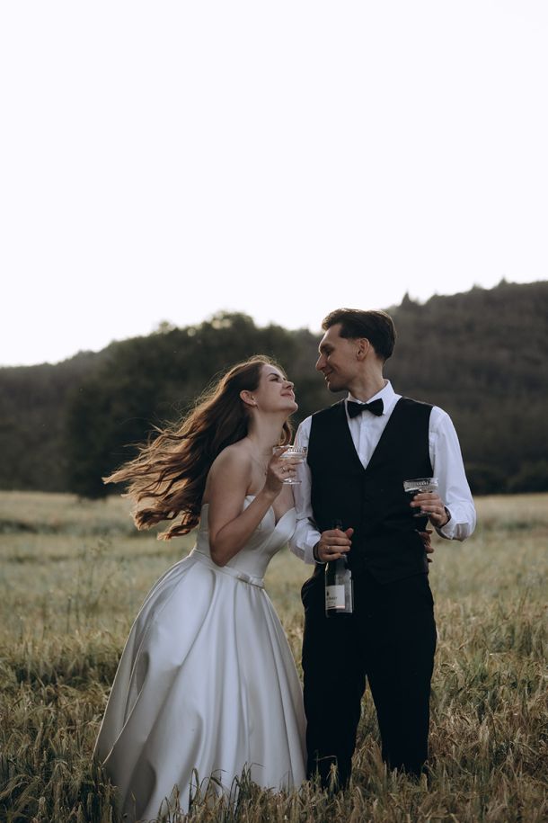Some moments don’t end with the last dance. Liza and Pantelis took their celebration one step further. Their next-day shoot in Thessaloniki was effortless and intimate, with champagne pops, barefoot chases, and quiet glances that said more than words ever could.It wasn’t just about capturing beauty — it was about bottling up the feeling of a love that’s still unfolding. Wild, romantic, and completely theirs.
