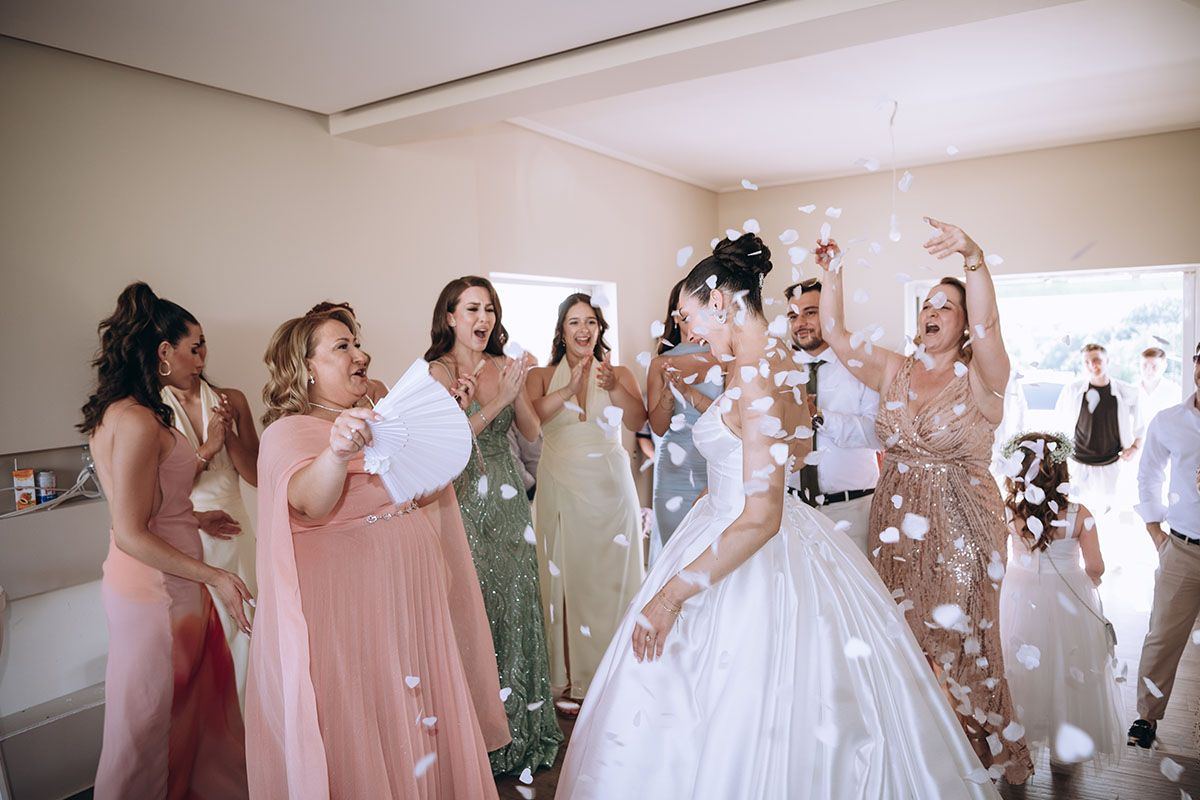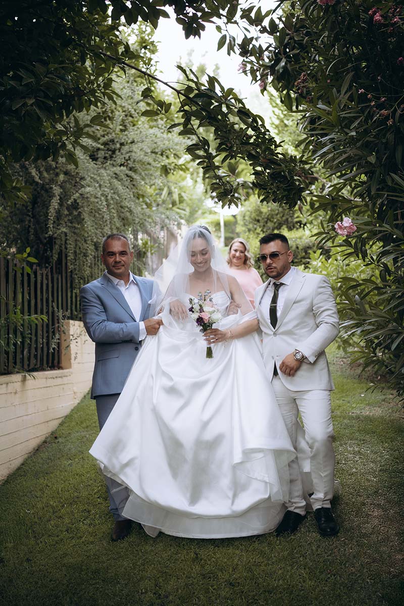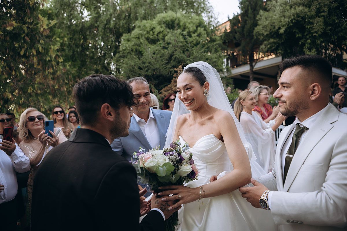 Evie and Ilias’ wedding in Athens was straight-up vibes. The city’s energy mixed with their laid-back style made the whole day feel effortless and real. Friends and family turned the celebration into one big hype crew — cheering, dancing, and filling every moment with love. Nothing felt staged or over the top, just pure joy and a story that felt authentically theirs. A wedding that wasn’t just beautiful, but unforgettable in the most down-to-earth way.