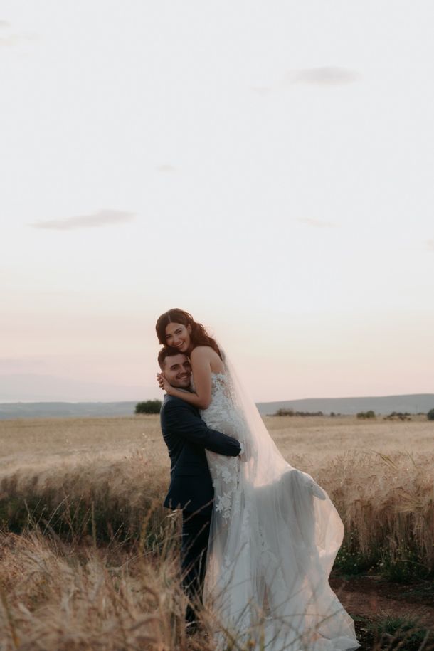 Maria and Giannis’ wedding was the perfect mix of laid-back charm and unforgettable moments. From the soft breeze catching Maria’s veil in the golden fields to the cheers and petals flying as they walked out together, everything felt effortlessly special. Their rings reflected a quiet kind of promise, while the energy from friends and family made the whole day come alive. It wasn’t over-the-top — just real, joyful, and full of love. A celebration that felt true to them in every way.